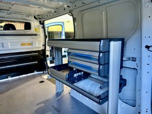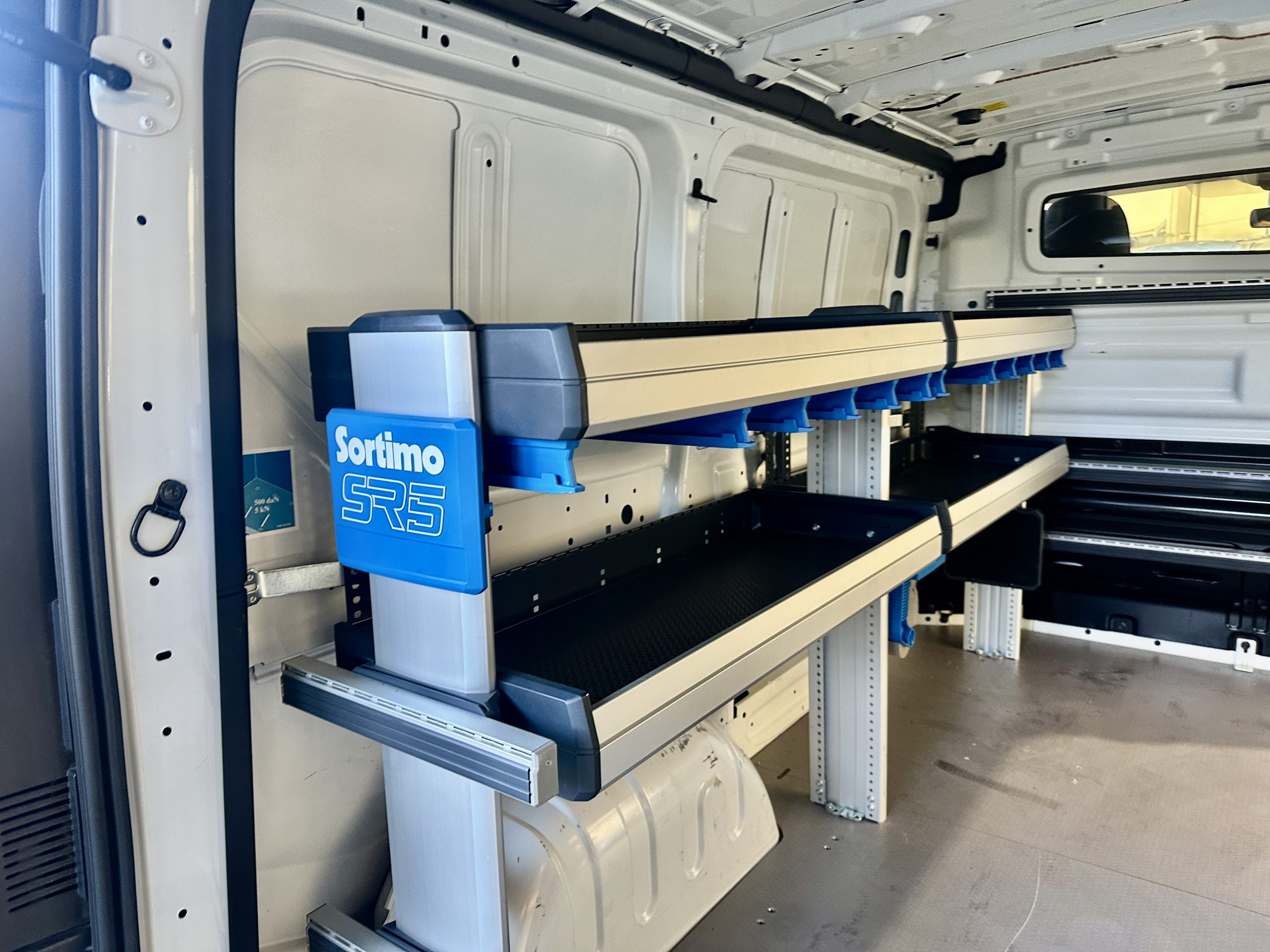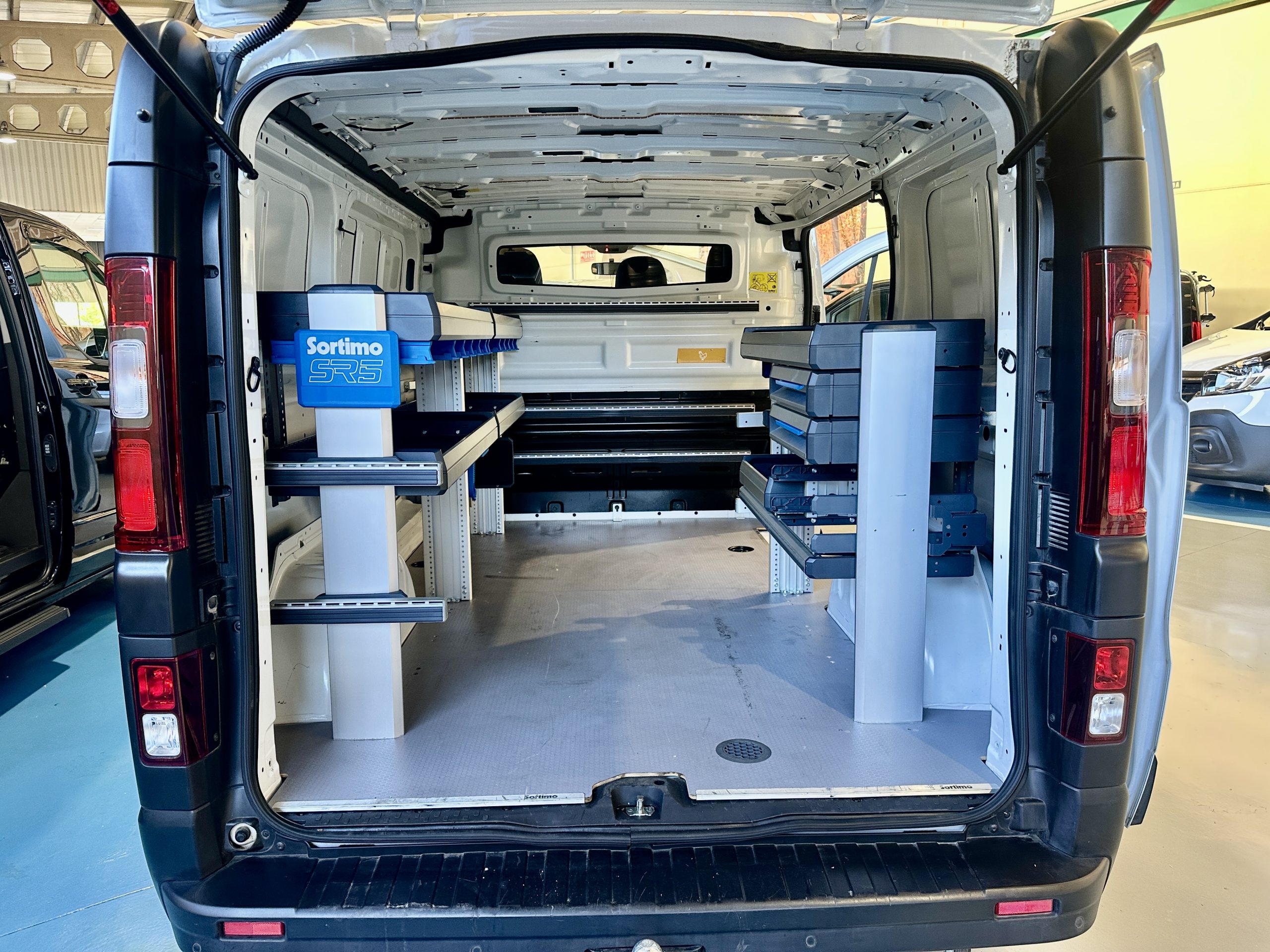EQUIPACION vehiculo taller SORTIMO SR5 homologado, consistente en armarios, banco de trabajo, suelo finlandes, etc…