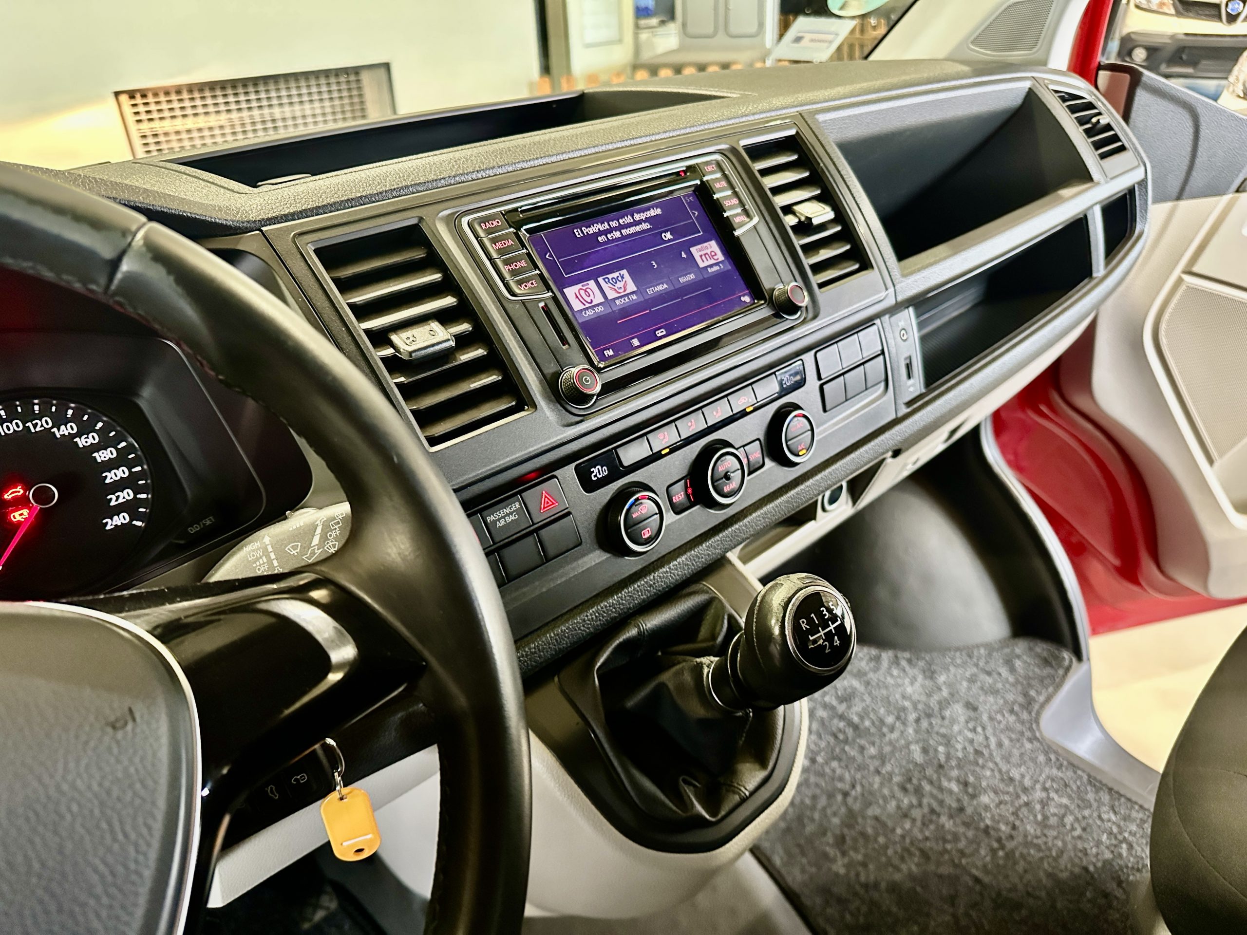Climatizador BIZONA con salida aire acondicionado en plazas traseras, PACK color (pintura paragolpes, manillas y retrovisores), equipo multimedia de pantalla táctil (manos libres, BLUETOOTH, USB, APP CONNECT, radio…), CAMARA TRASERA, sensor de parking trasero, ordenador de abordo, cierre centralizado con mando, elevalunas eléctrico, espejos laterales eléctricos, lunas tintadas, llanta 16″ VW PREMIUN original + NEUMAT 4 estaciones, ETC…